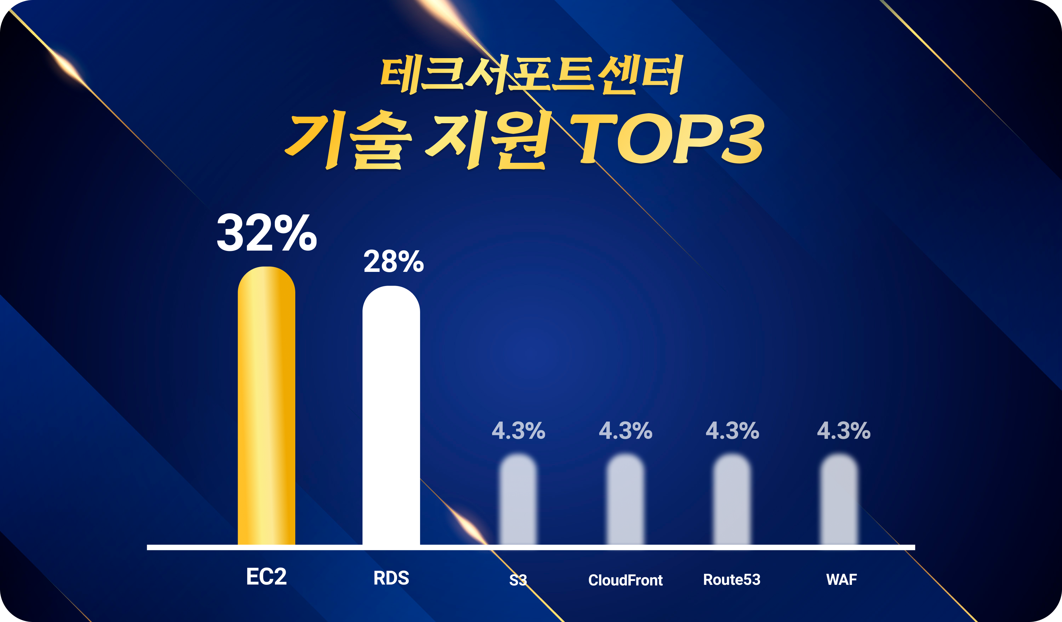 이 외에도 S3, CloudFront, Route53, WAF 등 서비스 품질과 보안을 뒷받침하는 주요 AWS 서비스들에 대한 지원 요청이 있었습니다. 기본 설정 점검과 보안 정책 강화 등 운영 안정성을 높이기 위한 문의가 많았던 점이 특징입니다.